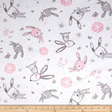 These are darling little pink and gray rabbits along with small pink and gray flowers on a blush pink background. It is perfect for apparel accents, blankets, throws, pillows, baby accessories, stuffed animals