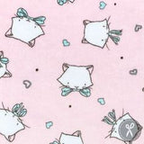 These are darling heads of little kittens along with small blue hearts on a bright pink background. Made by Shannon Fabrics.