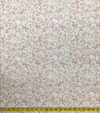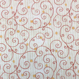 Fanciful red scrolls wind around cute little yellow stars. All on a cream background with subtle gold stripes. Truly a Christmas favorite. Designed by Shelly Comiskey of Simply Shelly Designs for Henry Glass & Co.